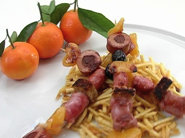 Колбаски с мандаринами на шпажках